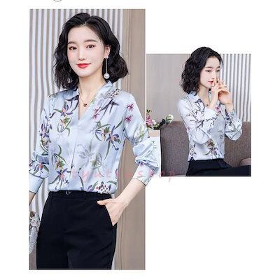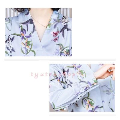 の入荷 ブラウスレディ一ス春夏お呼ばれブラウスシャツ長袖 パーティー大きいサイズシフォンブラウス花柄 プリント折り襟ご入学式レ 披露宴 お食事会 同窓会