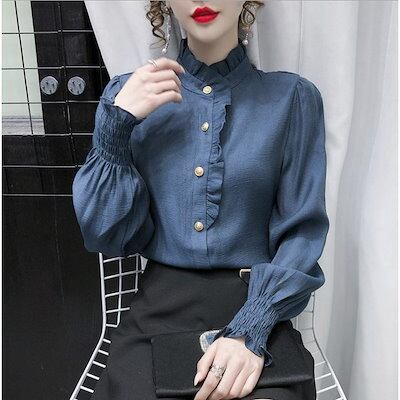 シャツブラウス ブラウス レディース 長袖 シャツ トップス ハイネック フリル ゆったり カジュアル 折り襟 大きいサイズ 着痩せ 春 オフィス 30代 40代