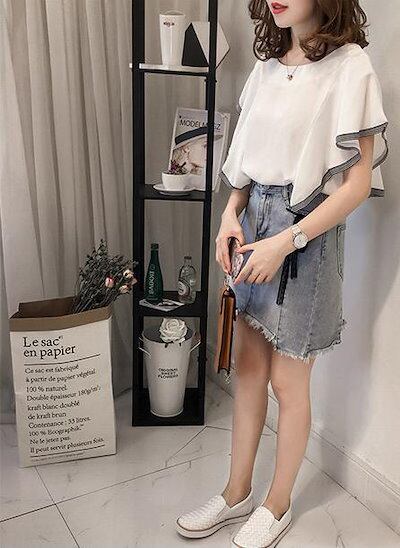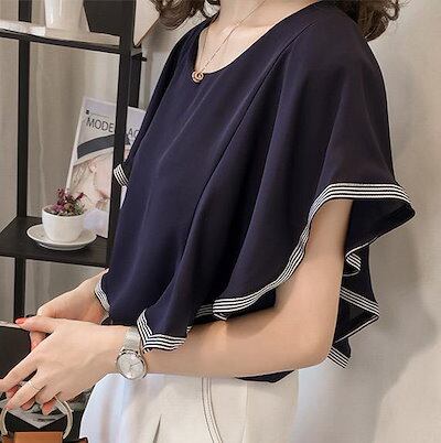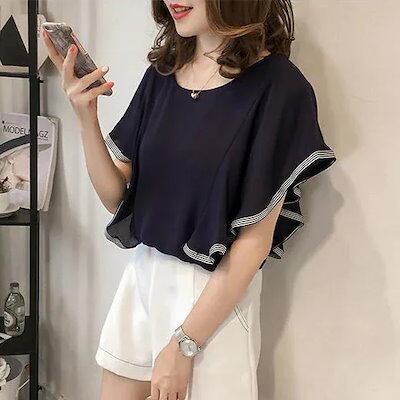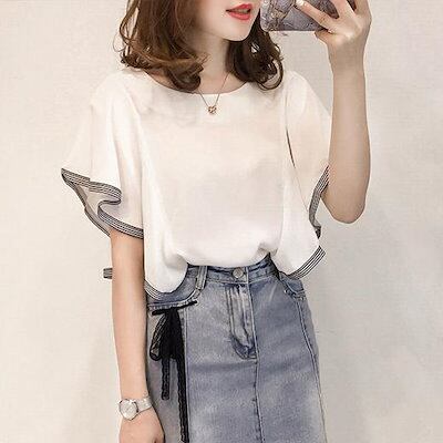 レディースファッショントップスレディースファッションシャツブラウスカットソー白シャツライン袖ありフレアスリーブクルーネック襟なしシフォンガーリーXL2XL3XL4XL大きいサイズ102030ホワイトネ