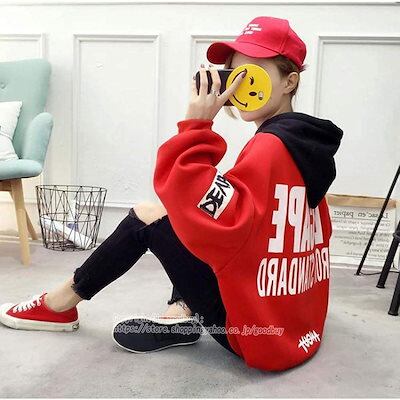 レディース パーカー 長袖 裏起毛 トレーナー ゆったり 韓国ファッション プルオーバー フードパー