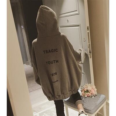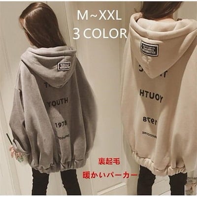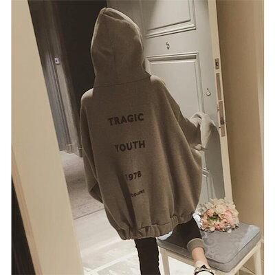 パーカー 裏起毛 レディース トップス 前開 チュニック 体型カバー トレーナー 字母柄 大きいサイ