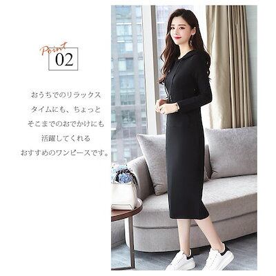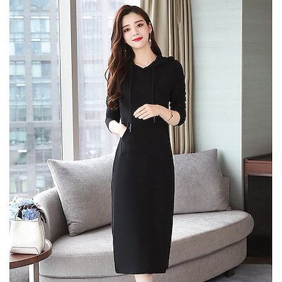 超目玉セール パーカーワンピース ロング ミモレ丈 裏起毛 無地 大きいサイズ レディース 春秋 ワ