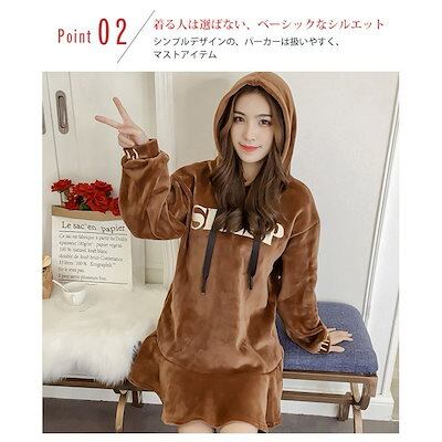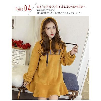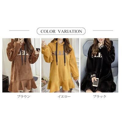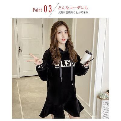 パーカーワンピース ベロア 光沢 ロゴ 裏起毛 裾フリル ショート おしゃれ 春秋 レディース ワン