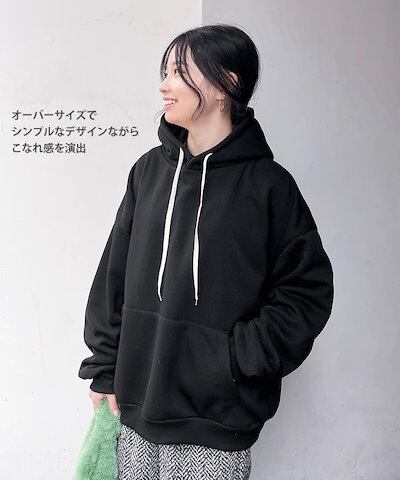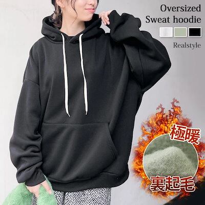 リアル スタイル裏起毛シンプルオーバーサイズスウェットパーカー レディース トップス 秋 冬 厚手 暖かい 極暖 あったか トレーナー 大きいサイズ おしゃれ 可愛い カジュアル スエット 上 防寒 寒さ対策