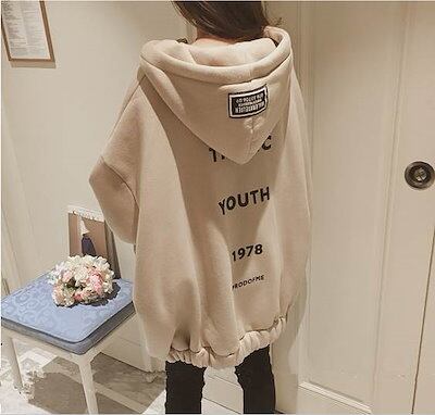 パーカー レディース 大きめ バックロゴ ゆる 厚手 裏起毛 オーバーサイ フード付き ファスナー 可愛い シンプル カジュアル ボーイッシュ 暖かい 細見え 着回し こなれ感 合わせやすい 抜 大人