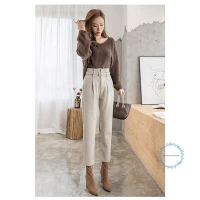 テーパードパンツ 秋冬 レディース ラシャ サルエルパンツ 厚手 スラックス オフィス 美脚 9分丈パンツ おしゃれ ギャザーパンツ 着痩せ
