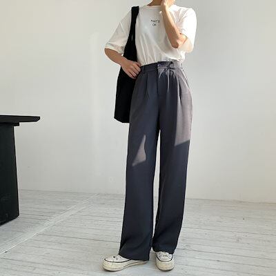 新型人気スラックスパンツガウチョパンツスラックスパンツトムスレディースハイウェストセルフカットパンツ
