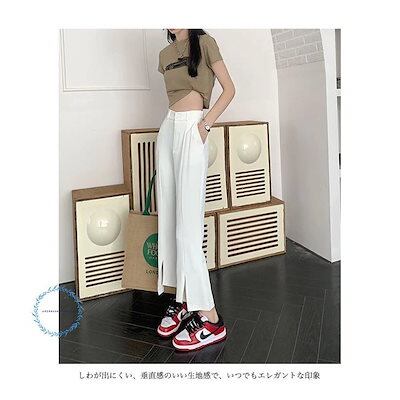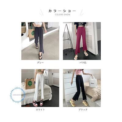 スラックス レディース フレアパンツ スリット入り 9分丈 ズボン スーツパンツ 夏 カジュアルパンツ 薄手 フレアスラックス ウエストゴム