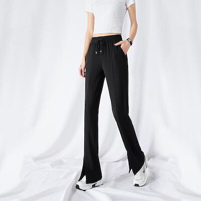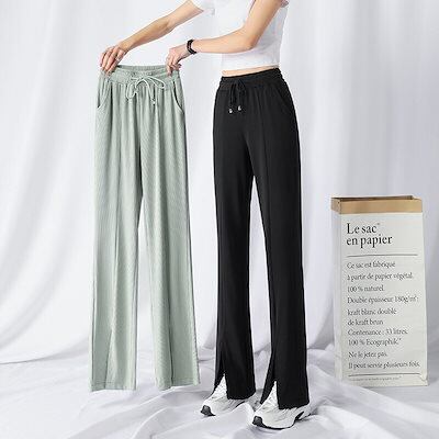 かっこいい!スラックスパンツガウチョパンツスーツパンツ高見着やせ スリット入りパンツ フルレングス
