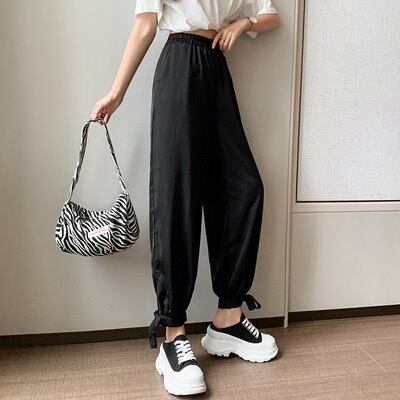 ウエストゴムパンツ ハイウェスト スリット入りパンツ かっこいい!スラックスパンツa920