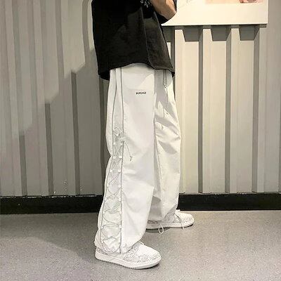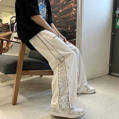 スラックスパンツ / 韓国ファッション/ゆるっとストリート お出かけ パンツ サイドライン レースアップ スポーティー ユニセックス レディース スタイルアップ 色っぽ 女っぽ カジュアル きれいめ