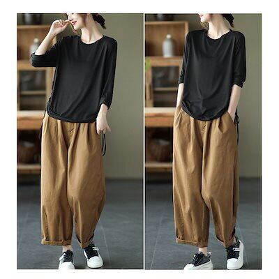 サルエルパンツ ボトムス テーパードパンツ レディース ポケット付き ゆったり 大きいサイズ M2