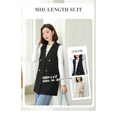 新作 トレンド スーツベスト ジレ レディース テーラード 前開き フォーマル ジレベスト コート ダブルブレスト アウター オフィス 膝上 ゆったり おしゃれ 春秋 着痩せ 通勤