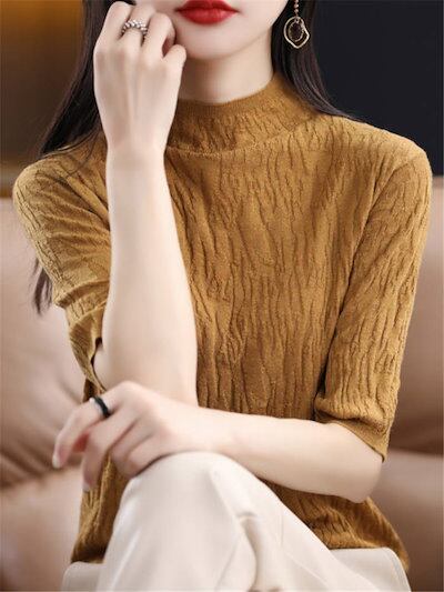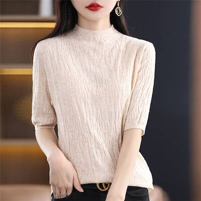 ニット セーター 秋 レディース 5分袖 フォーマル ニットトップス ニットtシャツ プルオーバー ハイネック ニット トップス 体型カバー シンプル 春秋 秋冬 上品 着回し きれいめ スーツ イン