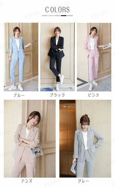 スーツ レディース 2点セット セットアップ パンツスーツ テーラードジャケット フォーマルスーツ アンクルパンツ カジュアル 可愛い フェミニン きれいめ 上品 エレガント ビジネス オフィス 通勤