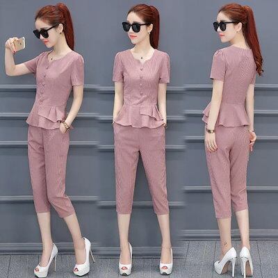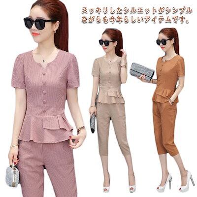 【TIME HOLDER】セットアップ ハーフパンツ パンツドレス 上下セット パンツスーツ レディース パーティー 夏 半袖 卒業式 ブラウス きれいめ 体型カバー フォーマル 大きいサイズ tシャ