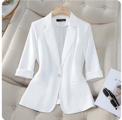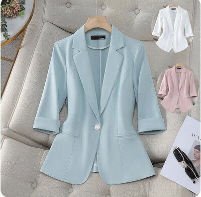 スーツジャケット レディース 無地 夏服 薄手 定番スーツジャケット 7分袖 20代 30代 40代 フォーマル オフィス カーディガン 通勤OL 3色 一つボタン