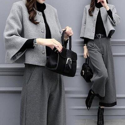 セットアップ レディース 春秋冬 40代 20代 フォーマル 長袖 2点セット アウター 春秋コート ガウチョパンツ カジュアル 大きいサイズ おしゃれ 上品 着痩せ 新品 OL オフィス