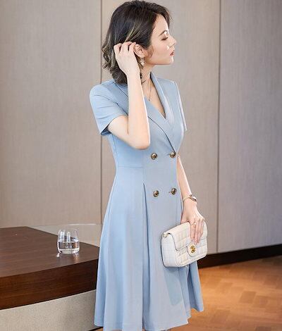 パーティードレス ビジネス 通勤ドレス スーツワンピース レディース 3色 フォーマル オフィス テーラードカラー お呼ばれ 二次会 披露宴 ダブルボタン