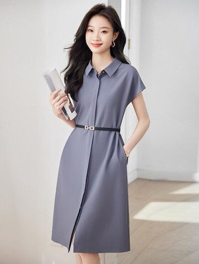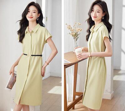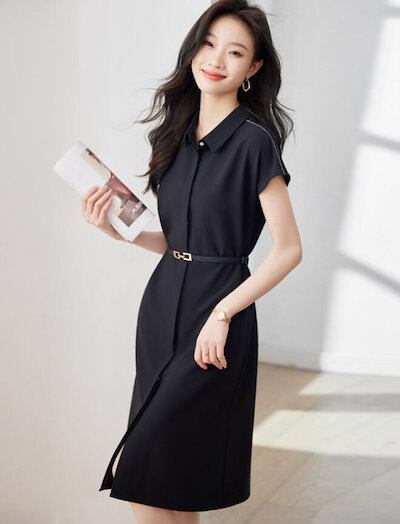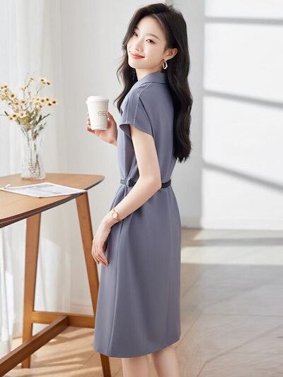 レディーススーツワンピース ベルトあり前開きワンピース ポロシャツワンピース パンツドレス 20代 30代 40代 半袖フェミニン 3色 事務服 フォーマル 制服OL ビジネス 入学式 卒業式 通勤