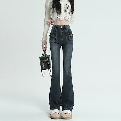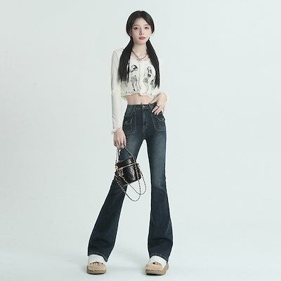 2024 初秋 デニムパンツ パンツ デニム ジーンズ スキニー ワイドレッグハイウエスト 脚長効果 美脚効果 細見え ウォッシュ加工 カジュアル レディース お出かけ 韓国ファッション