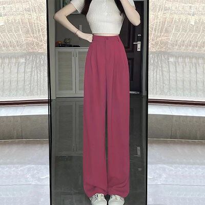 韓国ファッション 快適性スーツスラックス レトロレディーストレートパンツ 着痩せ気質ハイウエストパンツ