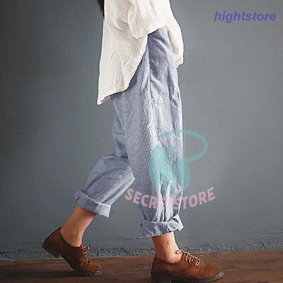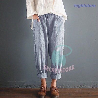 新品(タイムセール)サルエルパンツ レディース ロング丈 ボ テーパードパンツ チノパン ロングパンツ パンツ ゆったり コットン リネン 綿麻 ストライプ 薄手 春 夏 秋