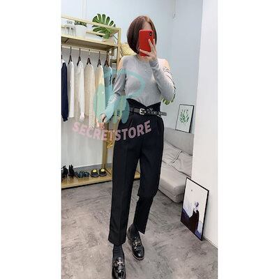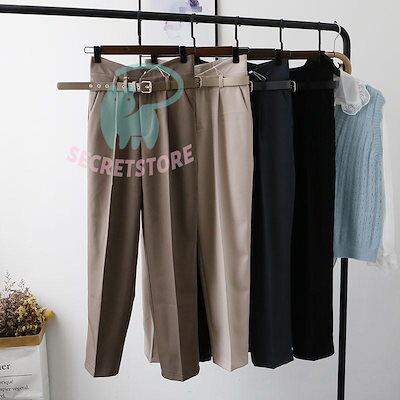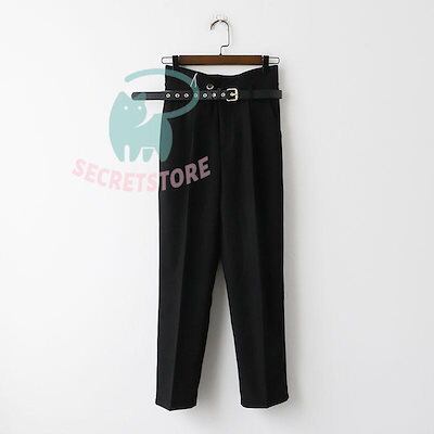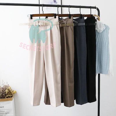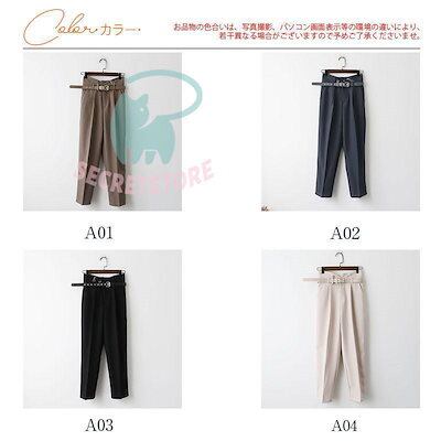 新品(タイムセール)テーパードパンツ パンツ レディース ボ ハイウエスト ベルト付き 体型カバー 楽ちん オフィス 就活 カジュアル 通勤 ズボン 無地