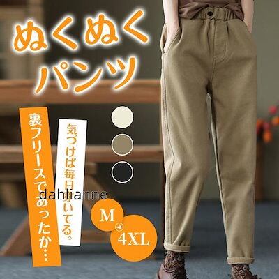 裏起毛 パンツ レディース テーパードパンツ 秋冬 パンツ ズボン 無地 カジュアル あったかい ウエストゴム 30代 40代 50代 60代 冬