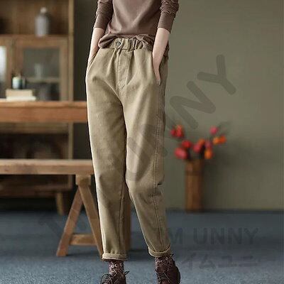 ハロウィンに備えて!裏起毛 パンツ レディース テーパードパンツ 秋冬 パンツ ズボン 無地 カジュアル あったかい ウエストゴム IM UNNY