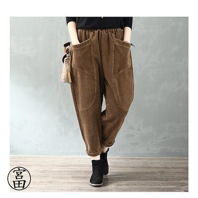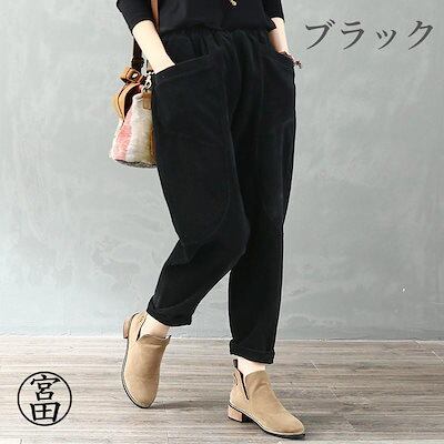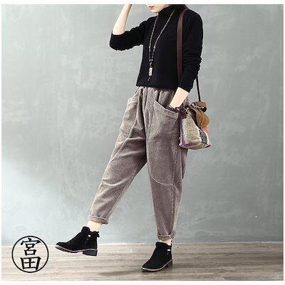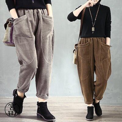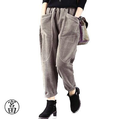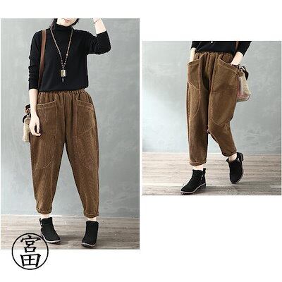 冬の暖かさ!サルエルパンツ レディース コーデュロイ アラジン テーパード アメカジ ズボン ウェストゴム ゆったり 大きい 体型カバー リラックス ボトムス 春 秋冬 コーデ