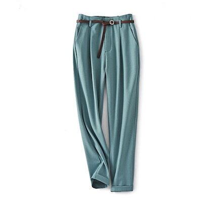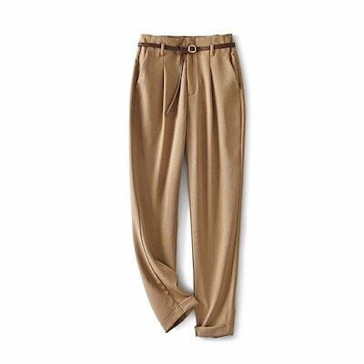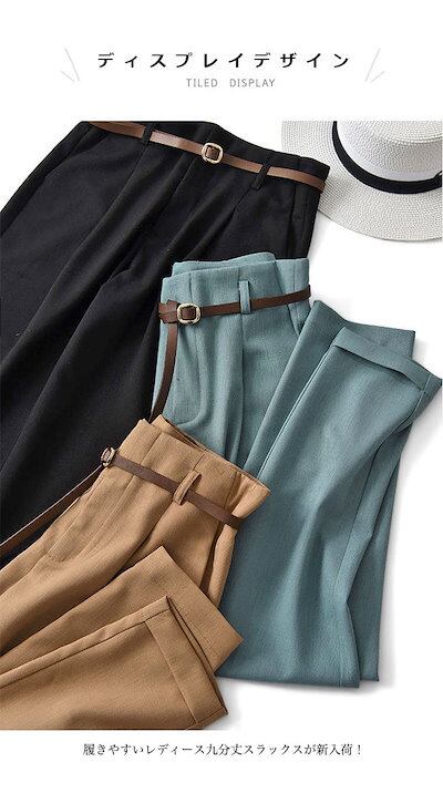 スラックス レディース ロングパンツ テーパードパンツ 9分丈 パンツ ズボン 長ズボン 腰ゴム ベルト 通気性 ソフト シンプル 無地 美脚 脚長 女性 ボトムス ロールアップ スタイルアップ ゆっ