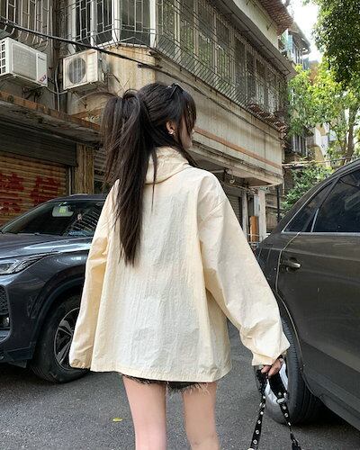アウター ジャケット2023秋季新作 韓国版 ジャケット 長袖 ジッパー フード 2色展開 無地 ポケアウター ジャケット 長袖 ジッパー フード ポケット レディース スポーティー ゆったり カ
