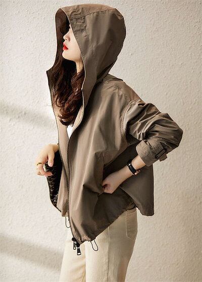 コート レディース 春 長袖 マウンテンパーカー スプリングコート フード付き ショート丈 ジャケット パーカー 薄手 ライトアウター きれいめ お洒落 大人 前開き カジュアル 体型カバー ゆったり