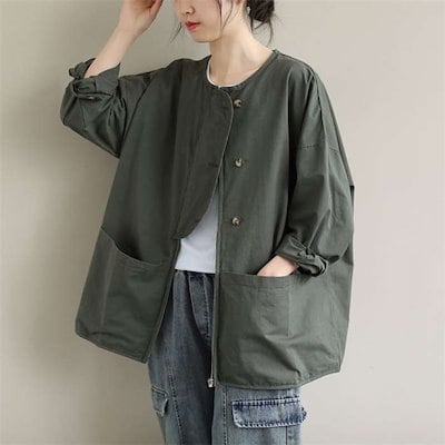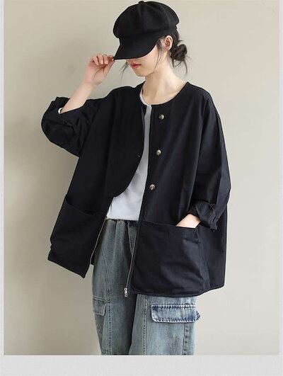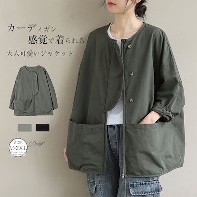 アウター ジャケット ライトアウター レディース トップス ノーカラージャケット 羽織り 軽量 春 秋 長袖 カーディガン ジップアップ ポケット 無地 ファスナー 軽い コーデ シンプル ビッグシル
