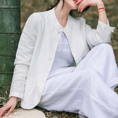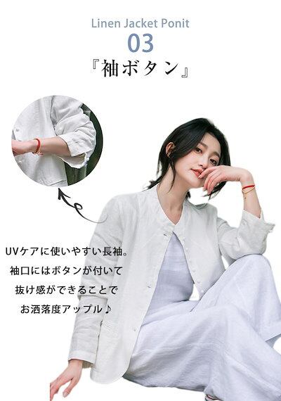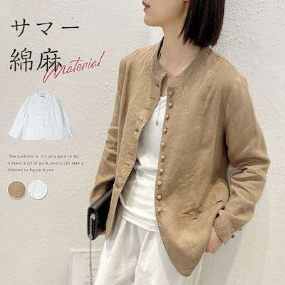 【新色追加】リネンジャケット レディース 薄手 春夏 綿麻 コットン リネン アウター サマーアウター リネンカーディガン 大きいサイズ 長袖 ショート丈 ノーカラー ポケット付き 無地 シンプル 綿