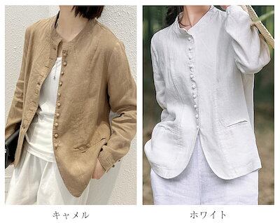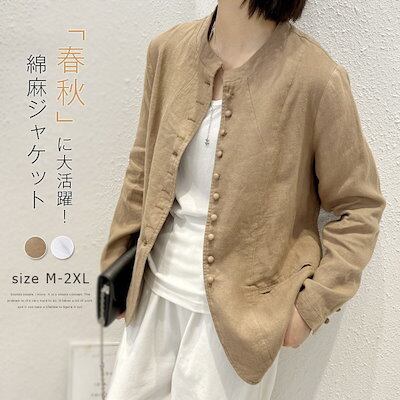 ジャケット レディース アウター カーディガン リネンジャケット 長袖 綿麻 コットン 麻 UV対策 スタンドカラー 冷房対策 無地 春ジャケット 春 夏 秋 ポケット付き エレガント 通勤 通学 デ