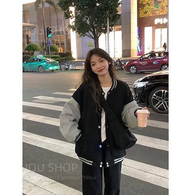 スタジャン レディース 裏起毛 スタジアムジャケット アウター スタジアムジャンパー 配色 切り替え ライン ビッグシルエット オーバーサイズ スウェット ブルゾン カレッジジャケット ユニセックス