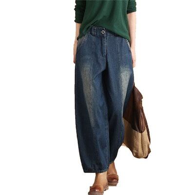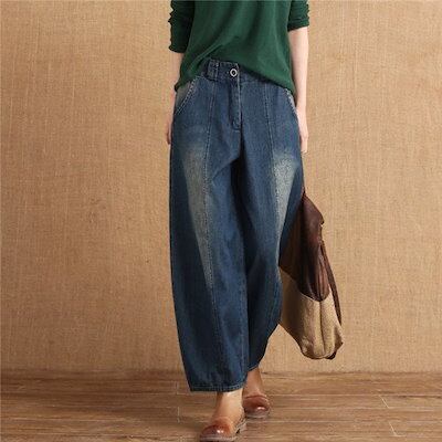 レディース デニムパンツ ガウチョパンツ ワイドパンツ ロング ハイウェスト バギーパンツ 大きいサイズ ゆったり お洒落 体型カバー