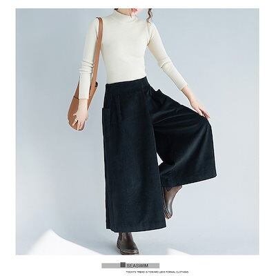 ワイドパンツ コーデュロイ ボトムス 体型カバー レディース ロング丈 コーデュロイ バギーパンツ