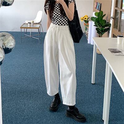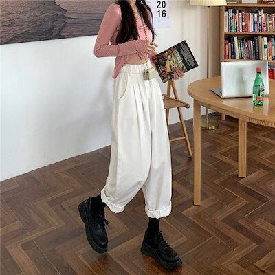 パンツ デニム ジーンズ レディース ズボン 春秋 ロング丈 ワイド バギーパンツ ボトムス ストレートパンツ テーパード ハイウエスト 体型カバー