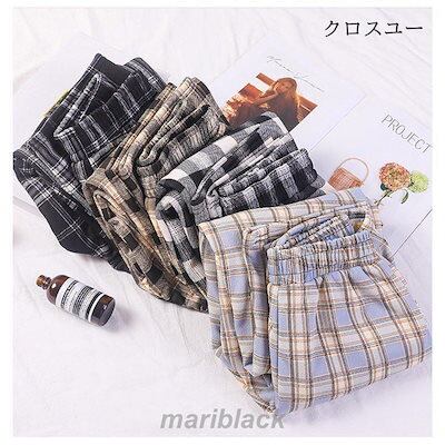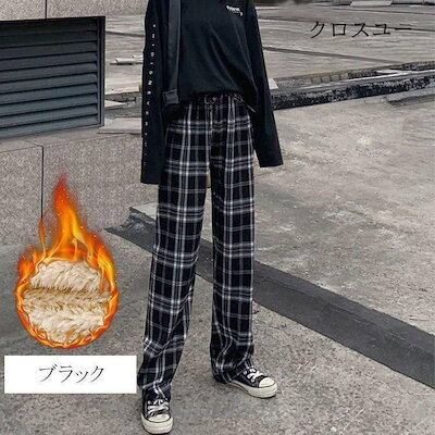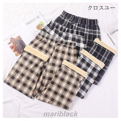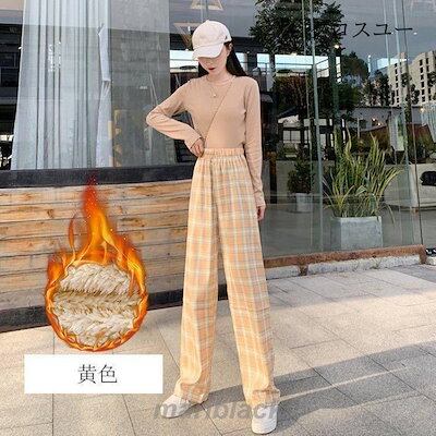 ワイドパンツ ロングパンツ 秋冬 チェック柄 レディース バギーパンツ ストレート イージーパンツ 裏起毛 裏ボア リラックス ウエストゴム 可愛い カジュアル