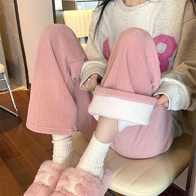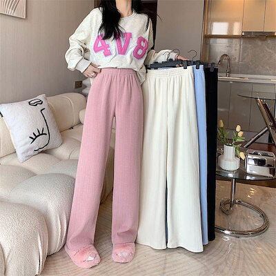 万能流行感 ワイドパンツ レディース 新作 バギーパンツ裏起毛 プリーツパンツ 秋冬 イージーパンツ ウエストゴム ボトムス 保温 暖かい