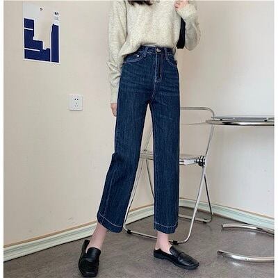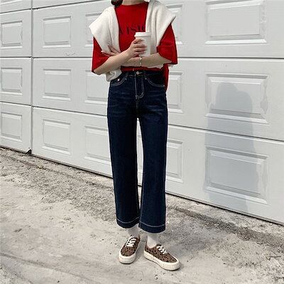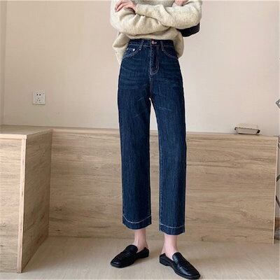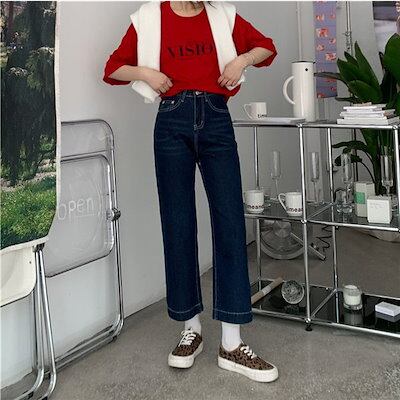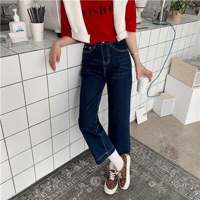 デニムパンツ レディース 秋 九分丈 ハイウエスト ボトムス ジーンズ ズボン ジーパン ストレートパンツ ビジネス ワイド バギーパンツ ロング丈