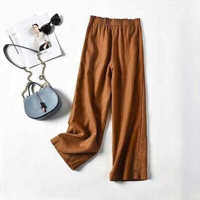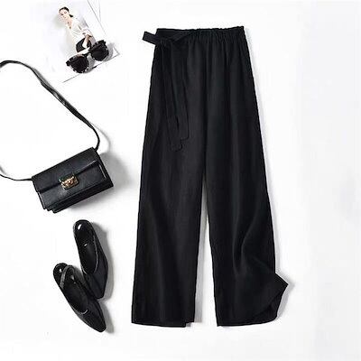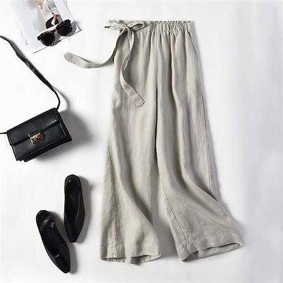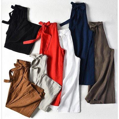品質いいな新品 ガウチョパンツ 綿麻ワイドパンツ レディース ボトムス リネン ウエストゴム 体型カバー 九分丈 涼しい リボン カジュアル 夏 バギーパンツ