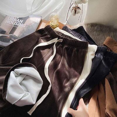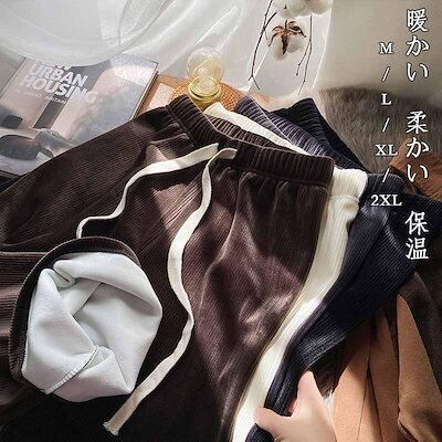新品 大人気 ワイドパンツ レディース バギーパンツ裏起毛 プリーツパンツ イージーパンツ ウエストゴム ボトムス カジュアル 保温 暖かい