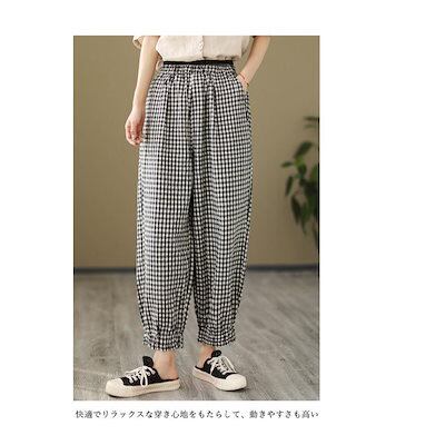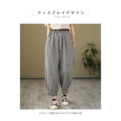 新作登場 バルーンパンツ ギンガムチェック サルエルパンツ 九分丈 レディース バギーパンツ 薄手 サマーパンツ ゆったり 体型カバー 夏 ウエストゴム 春