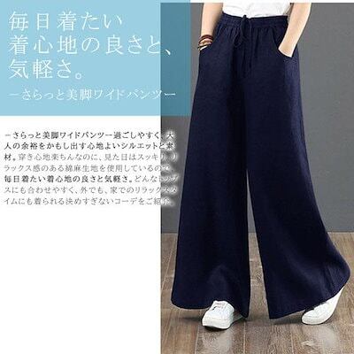 大人の魅力 ワイドパンツ レディース チノパン リネン バギーパンツ ガウチョパンツ ズボン ロング ワイドパンツルック 綿麻 大きいサイズ リラックス 美脚