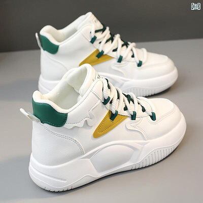 ハイ カット シューズ レディース 白靴 スポーツ シューズ 運動靴 秋冬 くい ソフト ソール 裏起毛 スニーカー 革