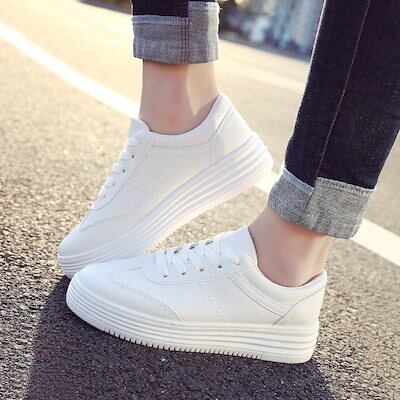 スニーカー レディース カジュアルシューズ PU革靴 ウォーキング 女子靴 運動靴 shoes 厚底シューズ 白靴